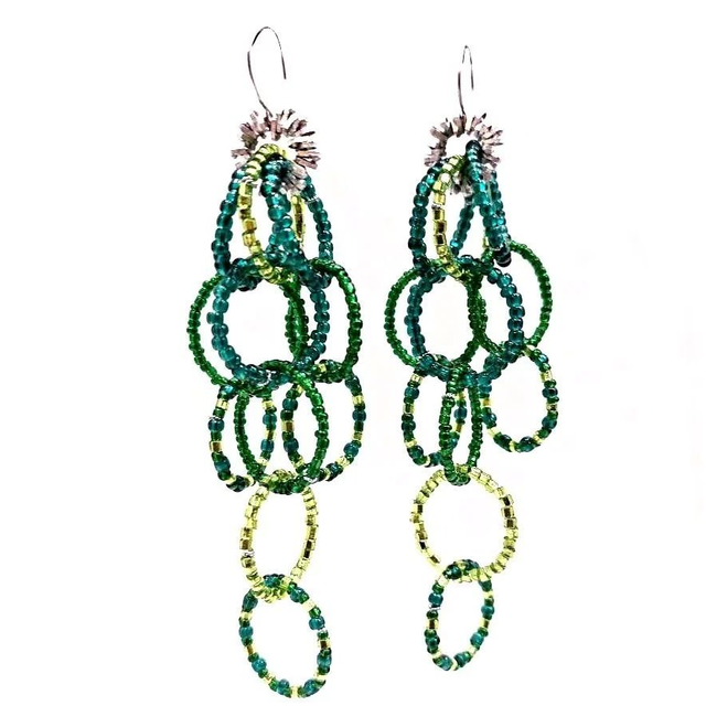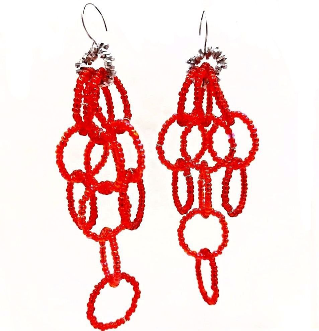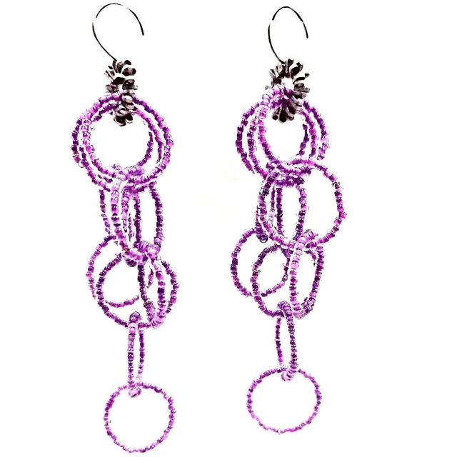 SCEGLI IL TUO COLORE: Orecchini strutturati, interamente realizzati a mano, con cerniera lampo e perline. (L. 10cm)