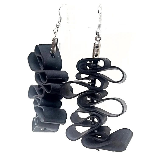 Orecchini, interamente realizzati a mano, artigianalmente con camera d'aria e cerniera lampo. (L. 8/10cm)