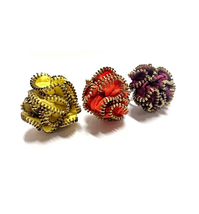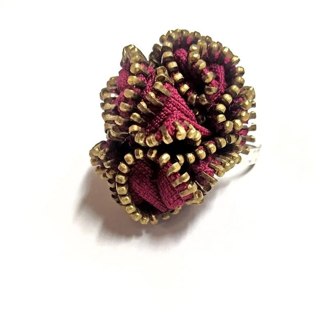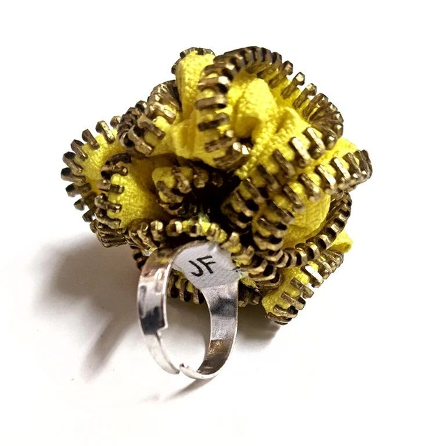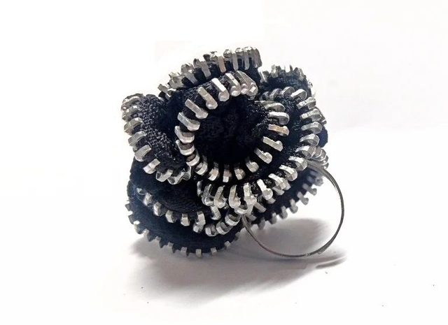 Anello, interamente cucito a mano, realizzato artigianalmente con cerniera lampo (Base Anello Regolabile Midi Ring Battuto Argentato Anticato).