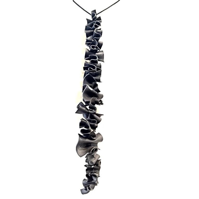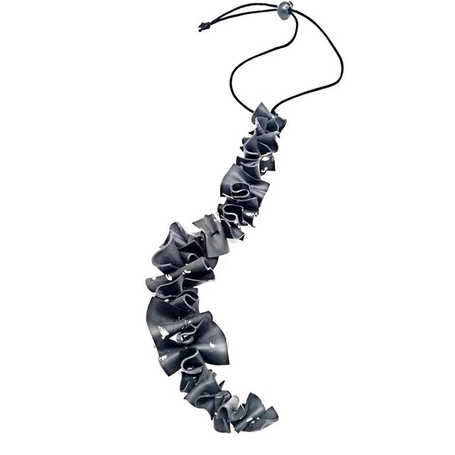 Collana strutturata, interamente cucita a mano, realizzato artigianalmente con camera d'aria riciclata dipinta.